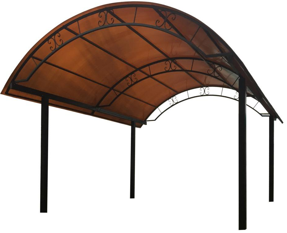 Навес ширина 3.5м, длина 4 м – устойчивая и практичная конструкция, которая может быть увеличена кратно 2м и защищать от непогоды все, что под ней находится: защитить автомобиль от ультрафиолета и осадков; можно использовать как беседку - установить стол с лавочками; поставить бассейн, благодаря навесу не будут падать листья и пыль. Если ваш автомобиль стоит на огороженной территории, возможно, капитальный гараж вам не нужен – для защиты лакокрасочного слоя от солнца и осадков достаточно будет установки навеса для машины из профильной трубы и сотового поликарбоната. Подобного типа навесы не требуют фундамента, соответственно весят во много раз меньше капитальных гаражей, что удешевляет их стоимость.Также всегда есть возможность перенести автонавес в другое место, в отличии от капитальных строений. Расстояние между столбами 3м.