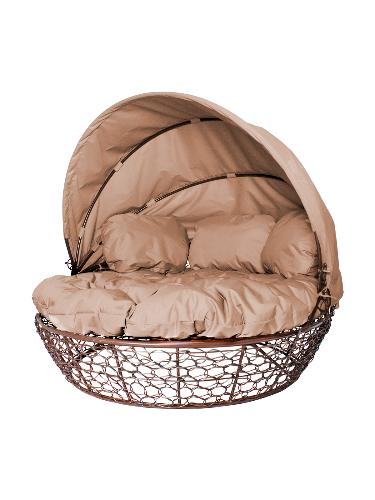 Диван Комфорт Козырек с ротангом, коричневый, бежевая подушка - купить в интернет-магазине Diopt.ru