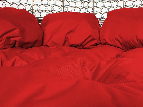Диван Комфорт Купол с ротангом, коричневый, красная подушка
