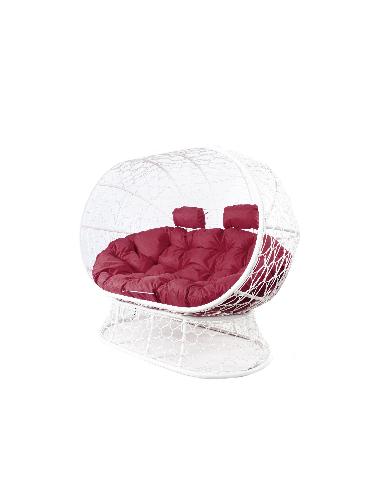 Диван ЛЕЖЕБОКА на подставке с ротангом белый, бордовая подушка