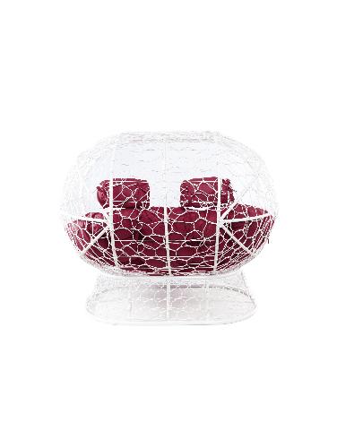 Диван ЛЕЖЕБОКА на подставке с ротангом белый, бордовая подушка: цены, фото - купить в интернет-магазине Diopt.ru