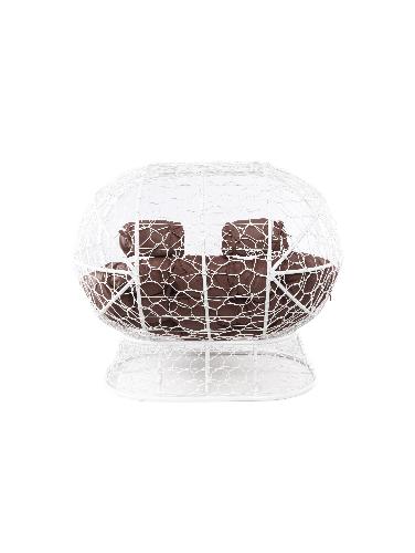 Диван ЛЕЖЕБОКА на подставке с ротангом белый, коричневая подушка