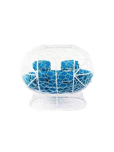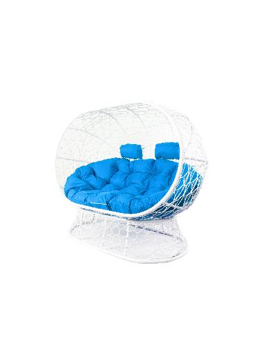 Диван ЛЕЖЕБОКА на подставке с ротангом белый, синяя подушка
