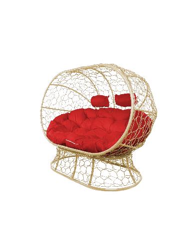 Диван ЛЕЖЕБОКА на подставке с ротангом бежевый, красная подушка