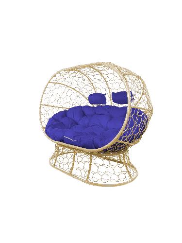 Диван ЛЕЖЕБОКА на подставке с ротангом бежевый, синяя подушка