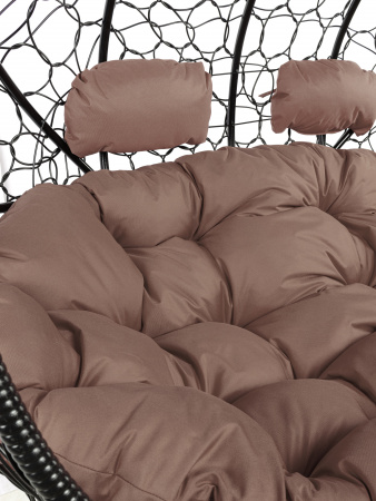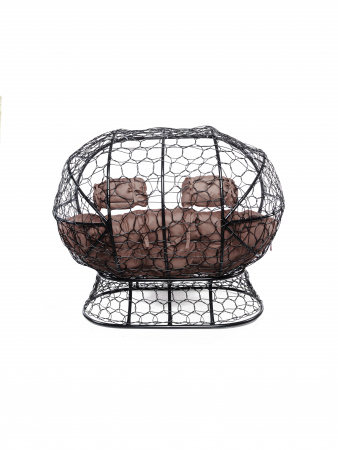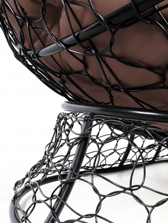 Диван ЛЕЖЕБОКА на подставке с ротангом чёрный, коричневая подушка