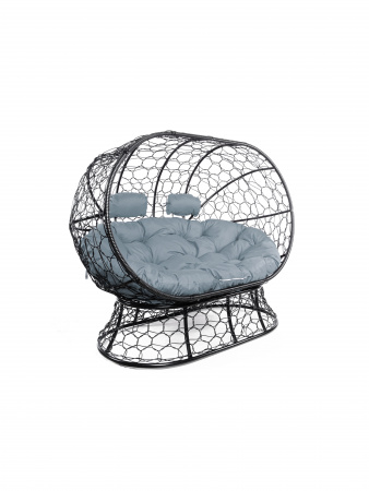 Диван ЛЕЖЕБОКА на подставке с ротангом чёрный, серая подушка