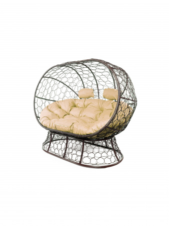 Диван ЛЕЖЕБОКА на подставке с ротангом коричневый, бежевая подушка