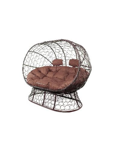 Диван ЛЕЖЕБОКА на подставке с ротангом коричневый, коричневая подушка