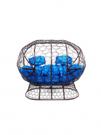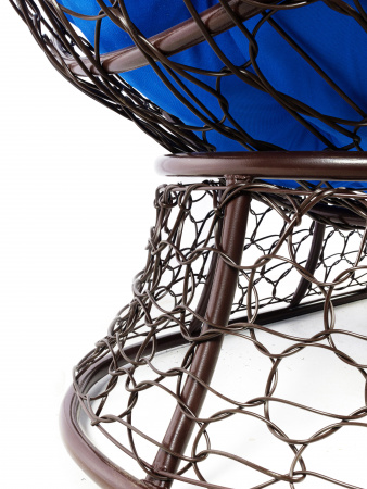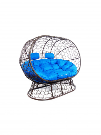 Диван ЛЕЖЕБОКА на подставке с ротангом коричневый, синяя подушка