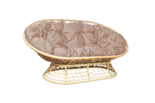 Диван МАМАСАН с ротангом бежевый, бежевая подушка