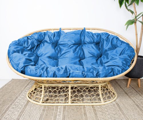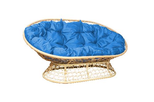 Диван МАМАСАН с ротангом бежевый, голубая подушка