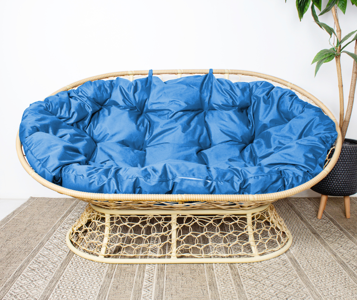 Диван МАМАСАН с ротангом бежевый, голубая подушка: цены, фото - купить в интернет-магазине Diopt.ru