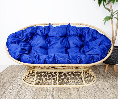 Диван МАМАСАН с ротангом бежевый,синяя подушка