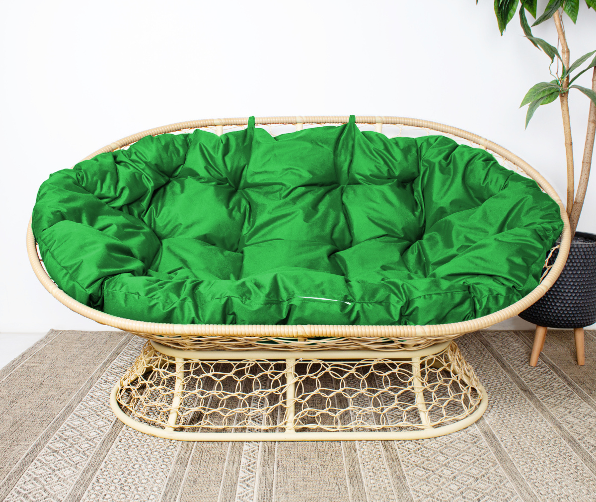 Диван МАМАСАН с ротангом бежевый, зеленая подушка