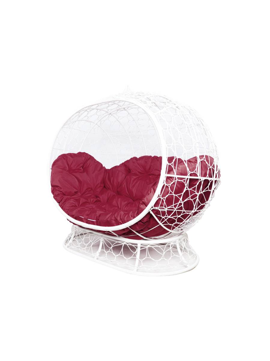 Диван УЛЕЙ на ножках с ротангом белый, бордовая подушка - купить в интернет-магазине Diopt.ru
