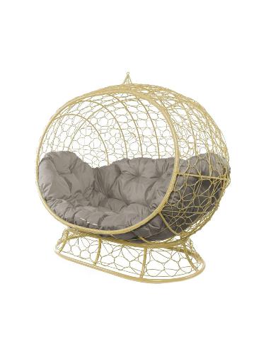 Диван УЛЕЙ на ножках с ротангом бежевый, серая подушка