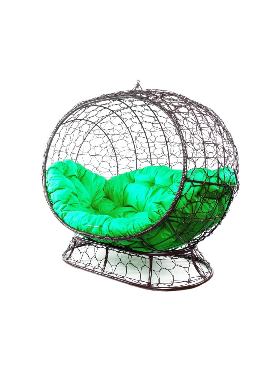 Диван УЛЕЙ на ножках с ротангом коричневый, зелёная подушка