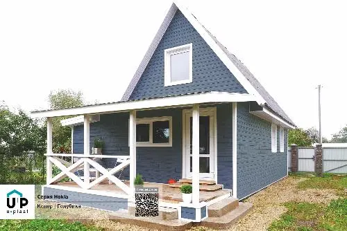 Панели Ю-Пласт Хокла Color Голубика выполнены в форме под дерево, имитируя объёмную структуру благородного дерева лиственницы. Это придаёт фасаду естественный и элегантный вид. Яркий цвет "Голубика" в сочетании с белыми элементами дома идеально подходит для оформления фасада в скандинавском стиле, добавляя свежесть и современность в общий дизайн.