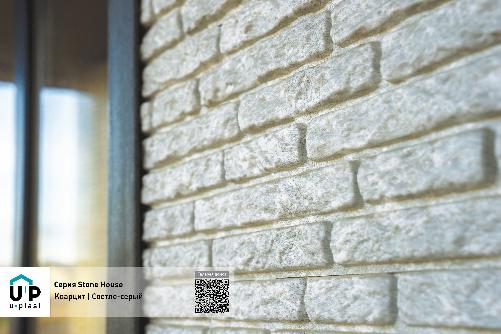 Кварцит - панели с узкими вытянутыми камнями и рельефной поверхностью, создающей эффект аккуратного современного фасада в духе европейской архитектуры.