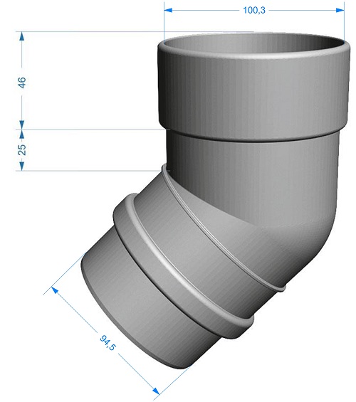 Колено 45°— поворотный элемент водосточной системы, предназначенный для изменения направления трубы под углом 45°. Используется для обхода архитектурных выступов, карнизов или смещения оси водостока. Обеспечивает герметичное соединение и сохраняет пропускную способность системы.