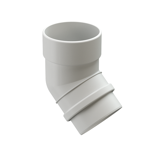 Колено 45°— поворотный элемент водосточной системы, предназначенный для изменения направления трубы под углом 45°. Используется для обхода архитектурных выступов, карнизов или смещения оси водостока. Обеспечивает герметичное соединение и сохраняет пропускную способность системы.