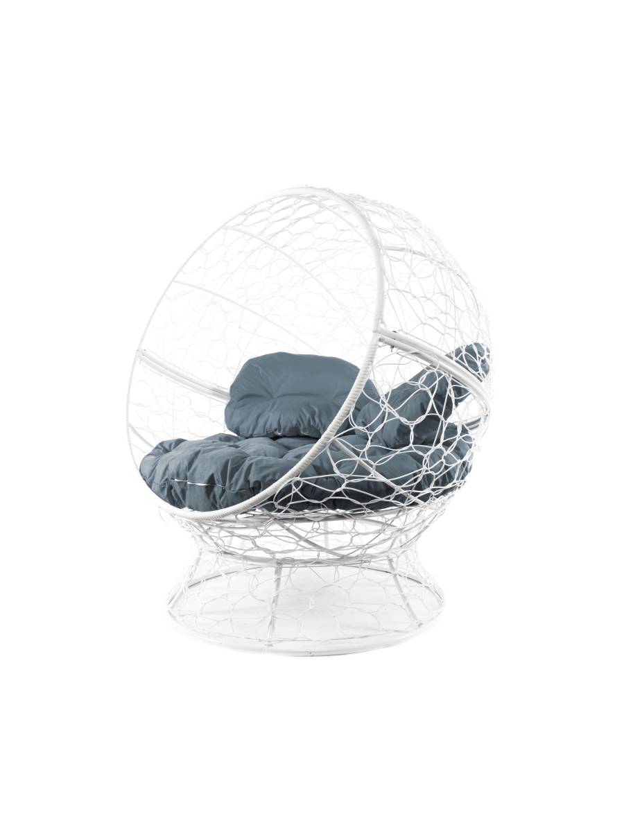Кресло АПЕЛЬСИН с ротангом белое, серая подушка - купить в интернет-магазине Diopt.ru
