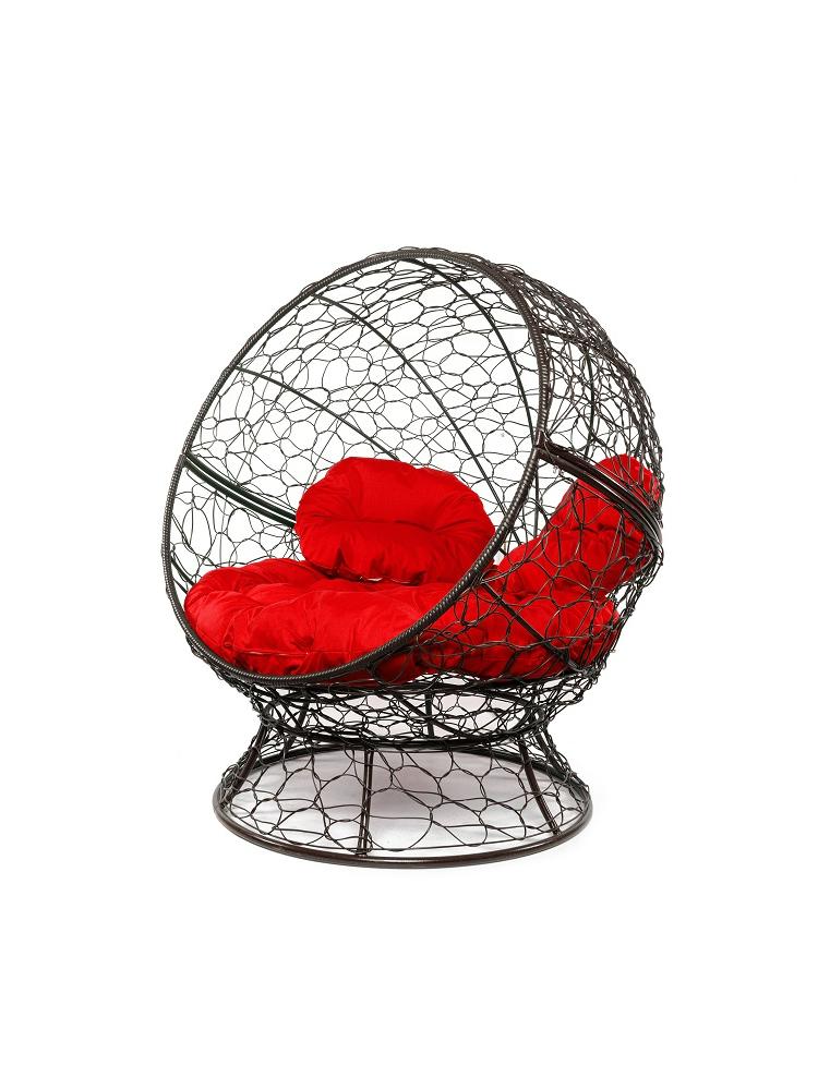 Кресло АПЕЛЬСИН с ротангом коричневое, красная подушка - купить в интернет-магазине Diopt.ru