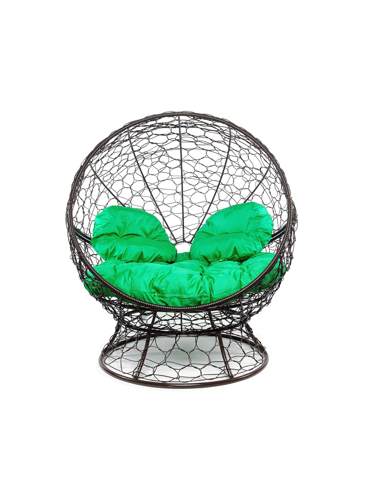 Кресло АПЕЛЬСИН с ротангом коричневое, зелёная подушка