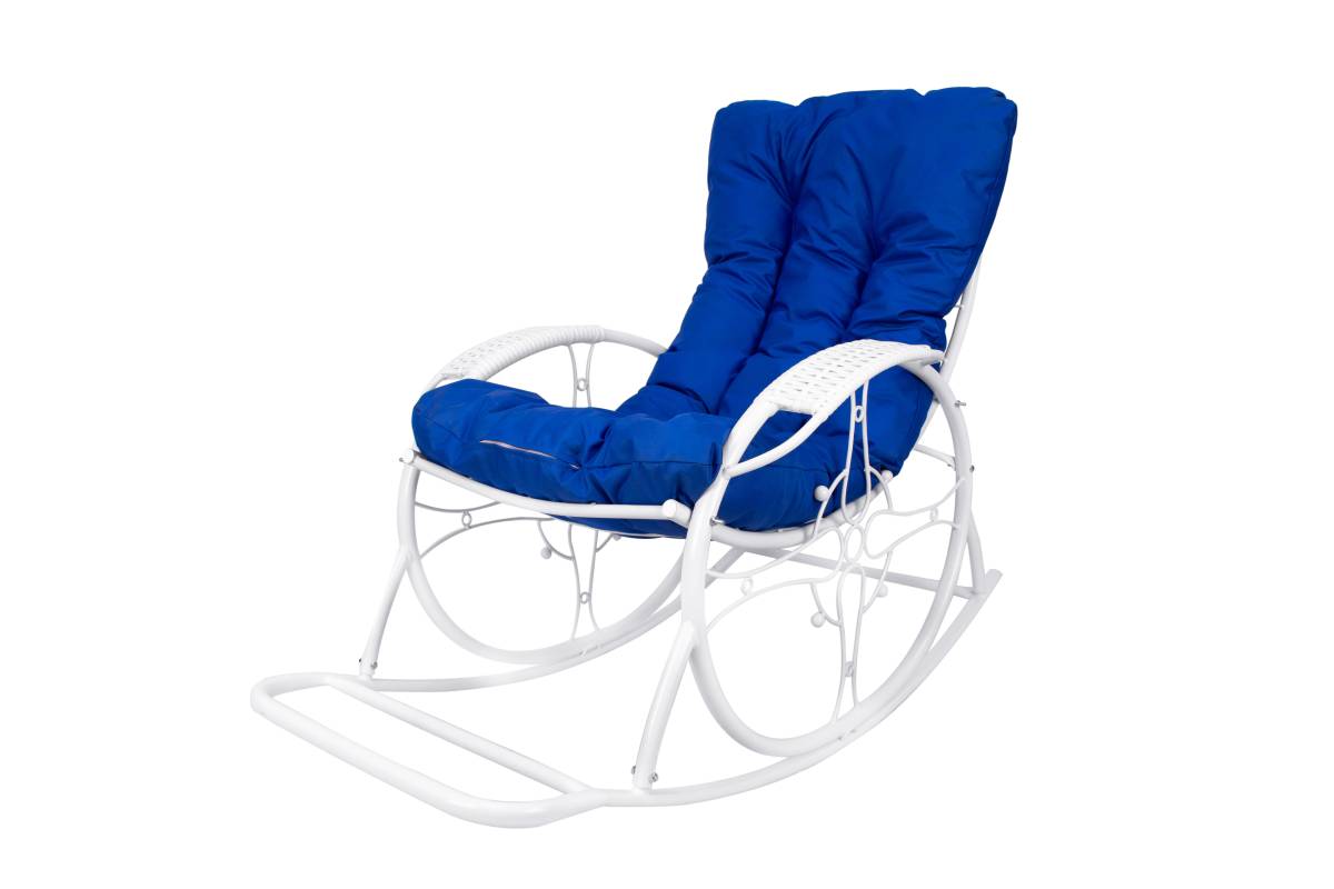 Кресло-качалка Овал ЛЮКС белое, синяя подушка: цены, фото - купить в интернет-магазине Diopt.ru