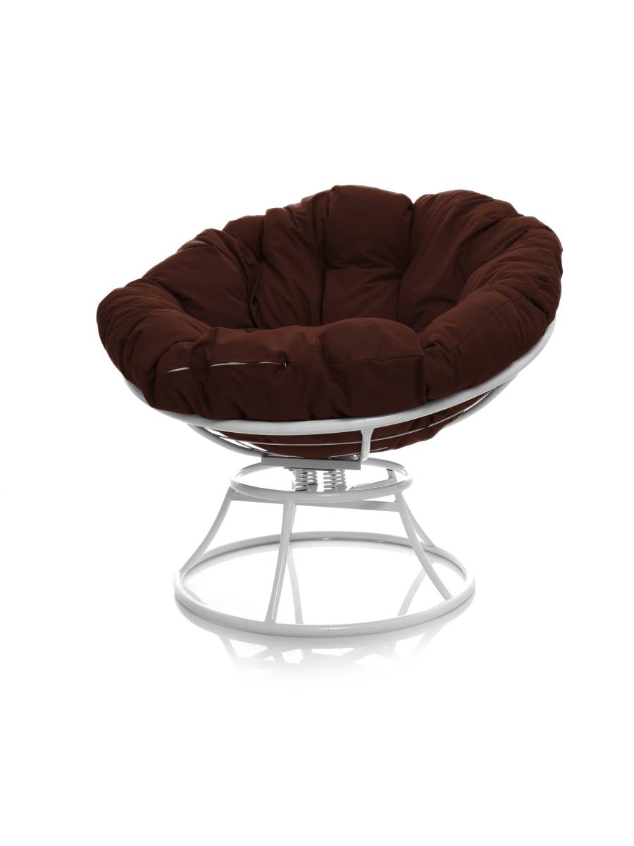 Кресло ПАПАСАН пружинка без ротанга белое, коричневая подушка - купить в интернет-магазине Diopt.ru