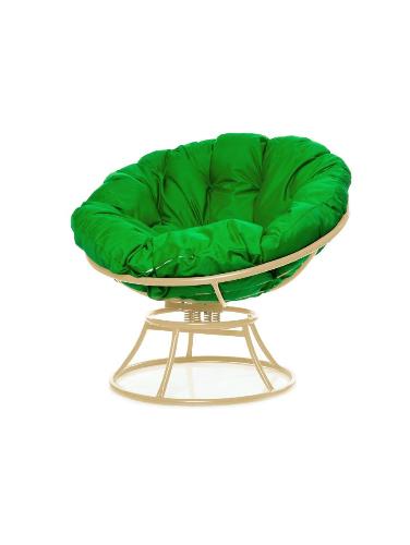 Кресло ПАПАСАН пружинка без ротанга бежевое, зелёная подушка