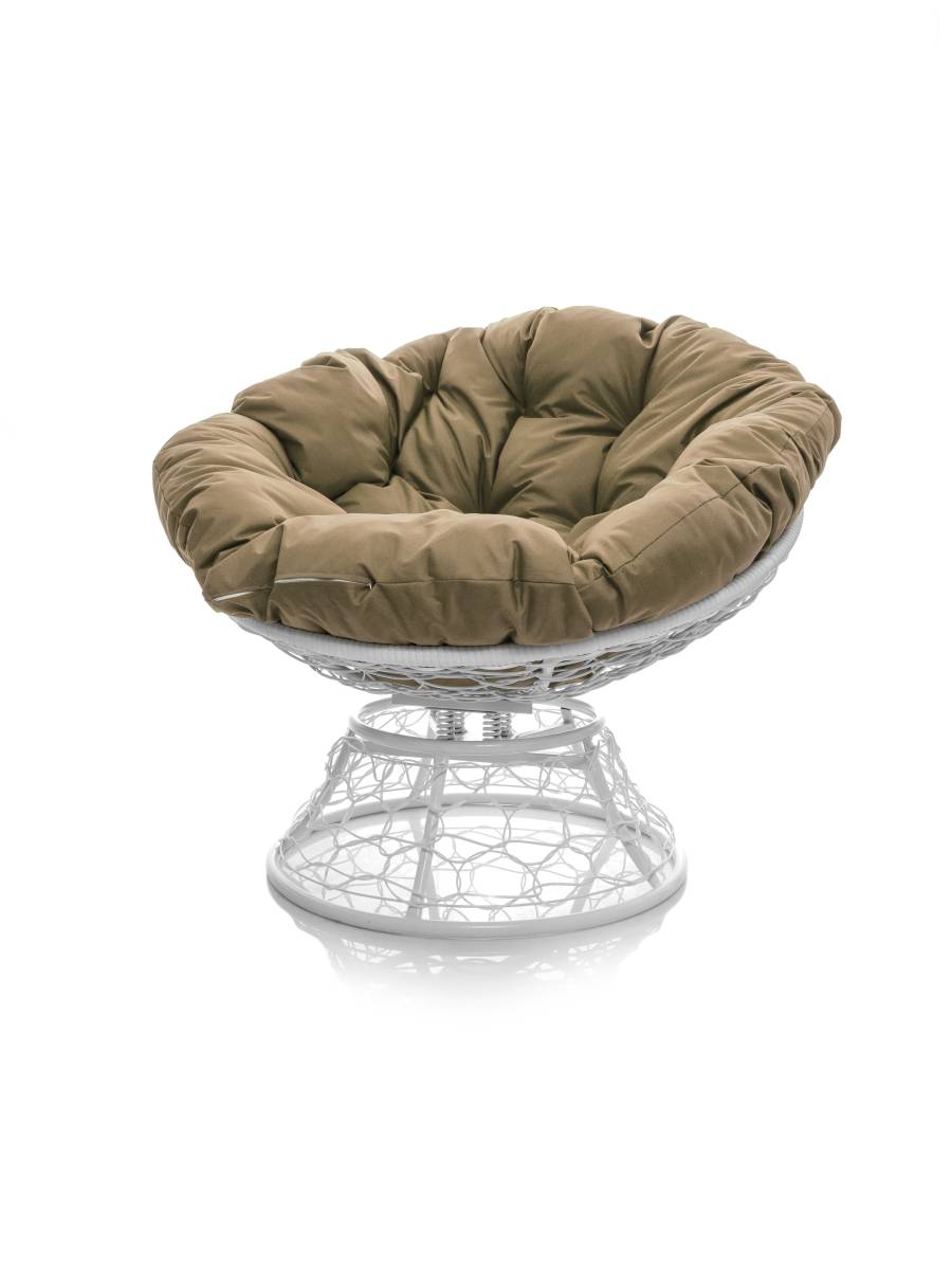 Кресло ПАПАСАН пружинка с ротангом белое, бежевая подушка - купить в интернет-магазине Diopt.ru