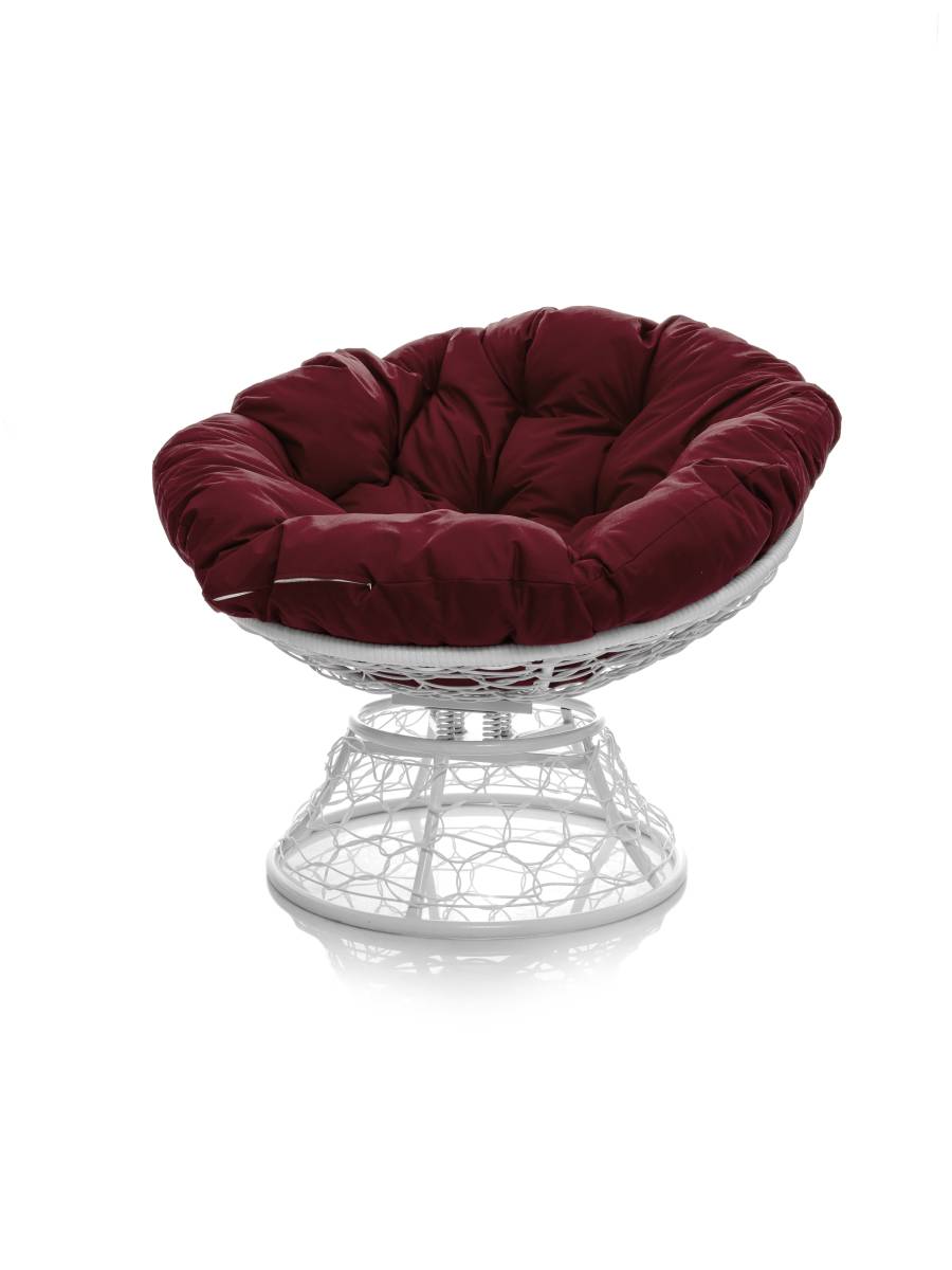 Кресло ПАПАСАН пружинка с ротангом белое, бордовая подушка - купить в интернет-магазине Diopt.ru