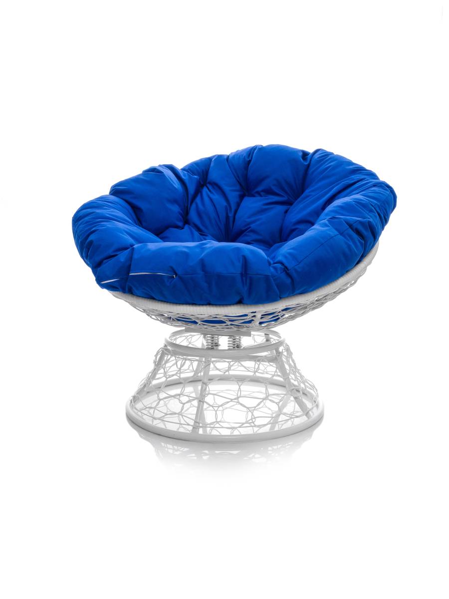 Кресло ПАПАСАН пружинка с ротангом белое, синяя подушка - купить в интернет-магазине Diopt.ru