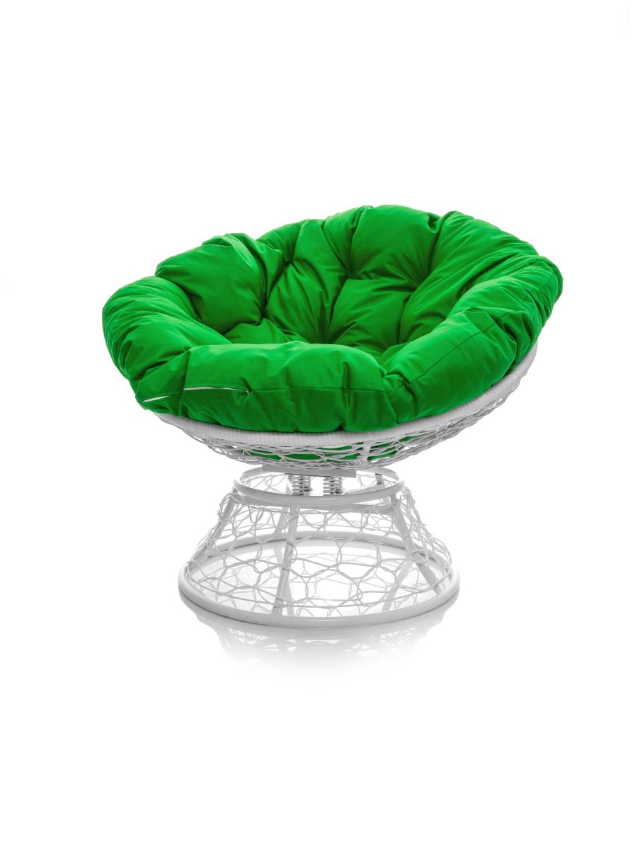 Кресло ПАПАСАН пружинка с ротангом белое, зелёная подушка - купить в интернет-магазине Diopt.ru