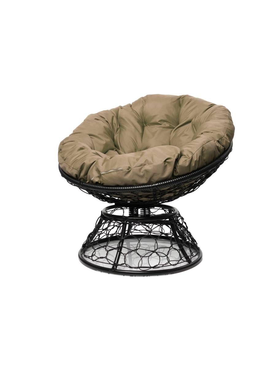 Кресло ПАПАСАН пружинка с ротангом чёрное, бежевая подушка - купить в интернет-магазине Diopt.ru