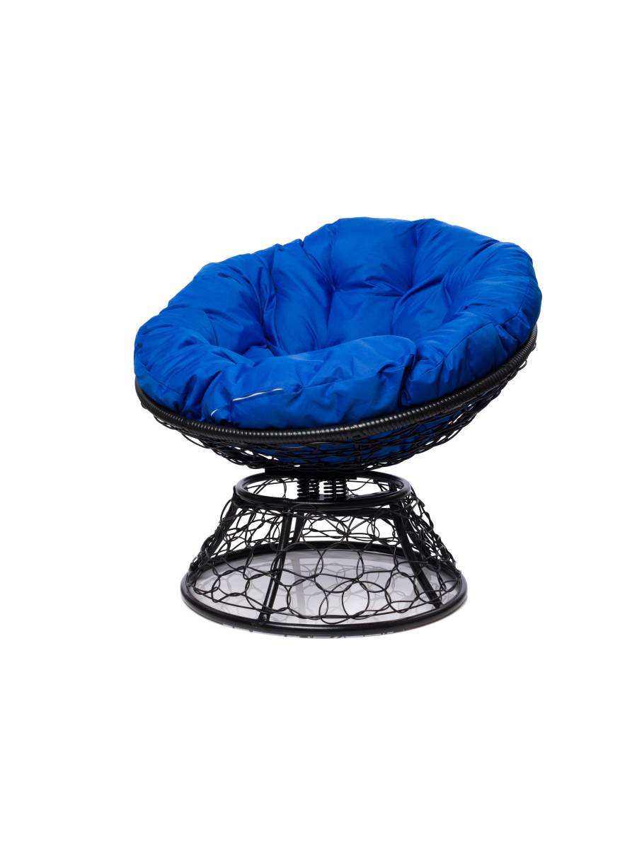 Кресло ПАПАСАН пружинка с ротангом чёрное, синяя подушка: цены, фото - купить в интернет-магазине Diopt.ru