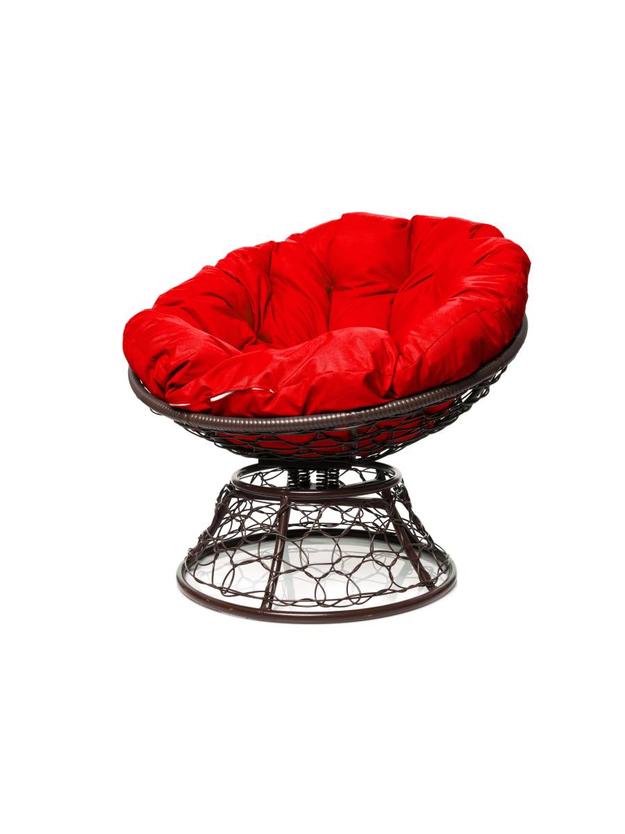 Кресло ПАПАСАН пружинка с ротангом коричневое, красная подушка - купить в интернет-магазине Diopt.ru