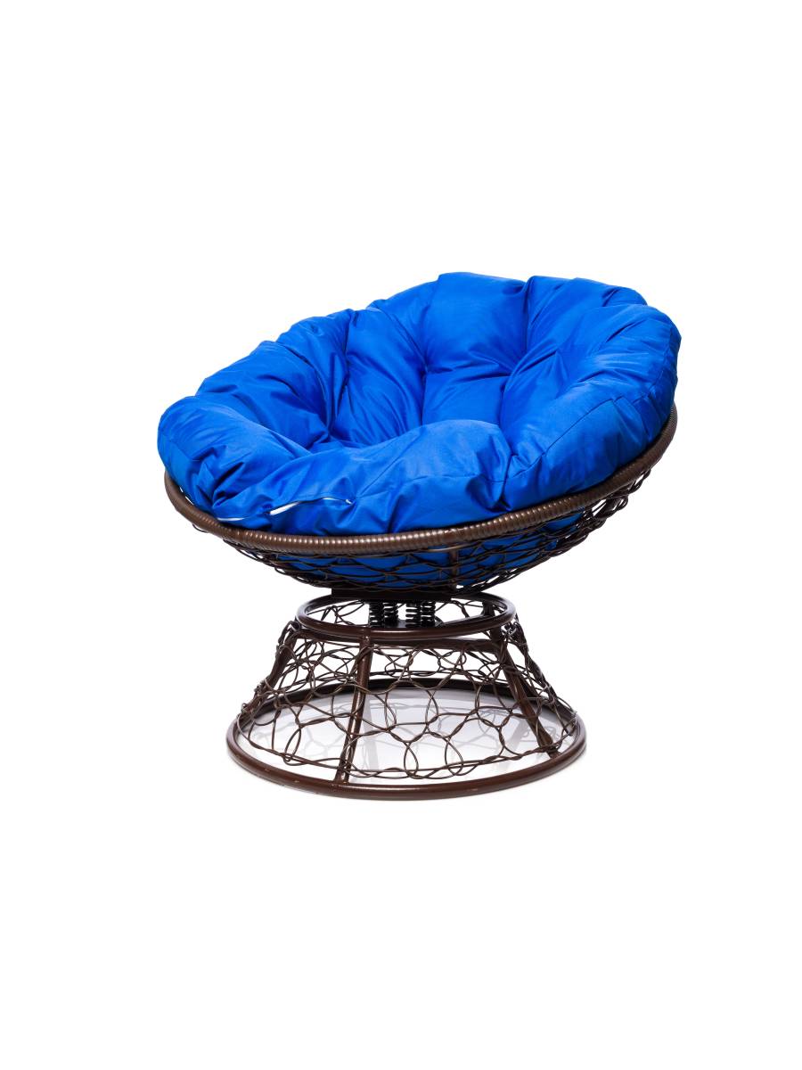 Кресло ПАПАСАН пружинка с ротангом коричневое, синяя подушка - купить в интернет-магазине Diopt.ru