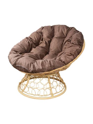 Кресло ПАПАСАН с ротангом бежевое, подушка Какао