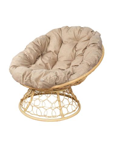 Кресло ПАПАСАН с ротангом бежевое, подушка Лен