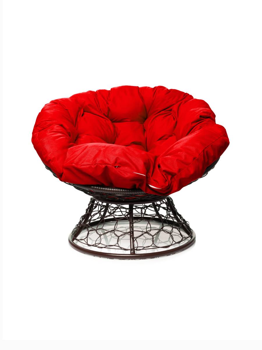 Кресло ПАПАСАН с ротангом коричневое, красная подушка - купить в интернет-магазине Diopt.ru