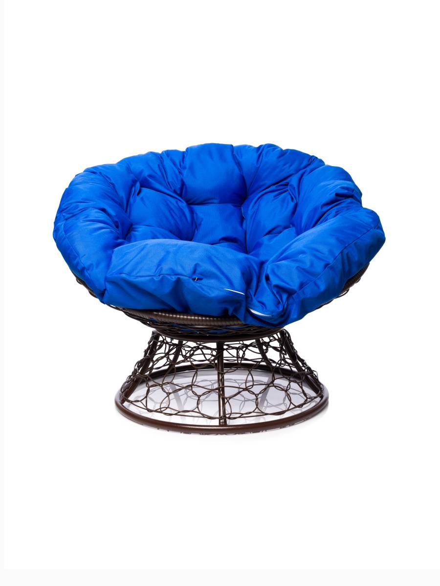 Кресло ПАПАСАН с ротангом коричневое, синяя подушка - купить в интернет-магазине Diopt.ru