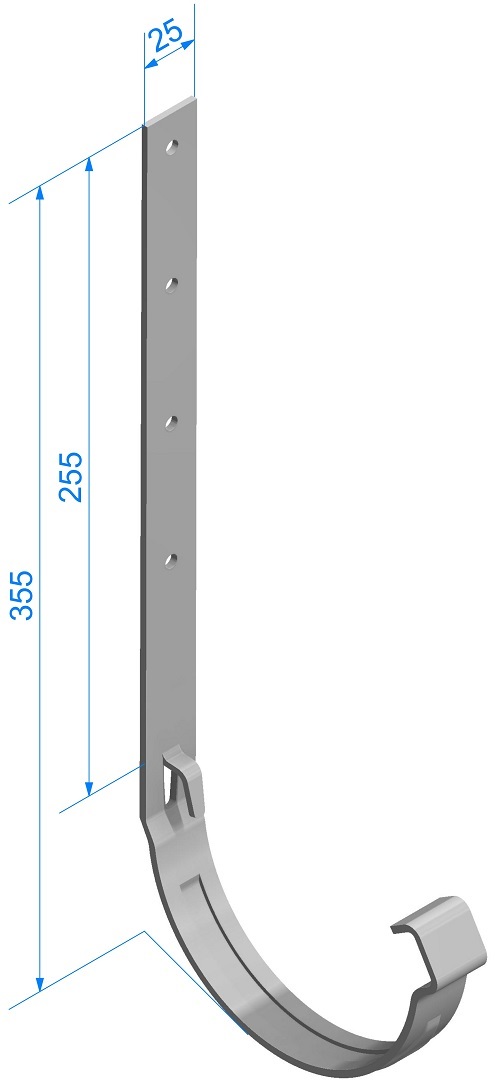 Кронштейн желоба металлический применяется при монтаже водосточной системы на кровлях, не имеющих лобовой доски. Длина опорной части (300 мм) позволяет закрепить кронштейн непосредственно на стропилах или обрешётке, обеспечивая необходимый вынос желоба для эффективного сбора воды.