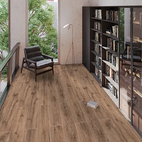 Коллекция представляет богатый тёмный оттенок дуба с выразительной текстурой. Многослойный принт и рельефная поверхность создают полную иллюзию натурального паркета, придавая интерьеру статусность и респектабельность.