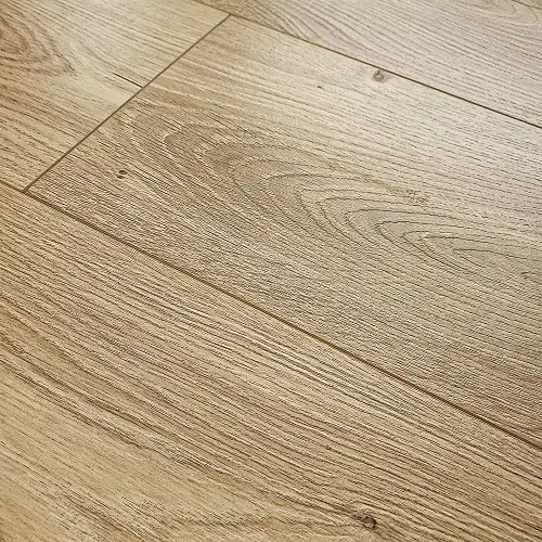 Фаска V по периметру каждой доски придаёт покрытию эффект натурального дерева, создавая визуальную глубину и подчеркивая текстуру. Тиснение в регистр добавляет реалистичности, позволяя тактильно ощутить структуру древесины. Это делает ламинат не только красивым, но и приятным на ощупь.