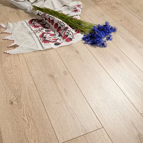 1. Эстетика: Светлый оттенок ламината визуально расширяет пространство, делая его более светлым и уютным. Фаска 4V придает каждой доске объем и подчеркивает текстуру, создавая эффект натурального дерева.