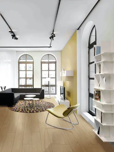- Однополосный рисунок с чёткими кромками создаёт иллюзию цельной деревянной поверхности, скрывая небольшие дефекты основания.