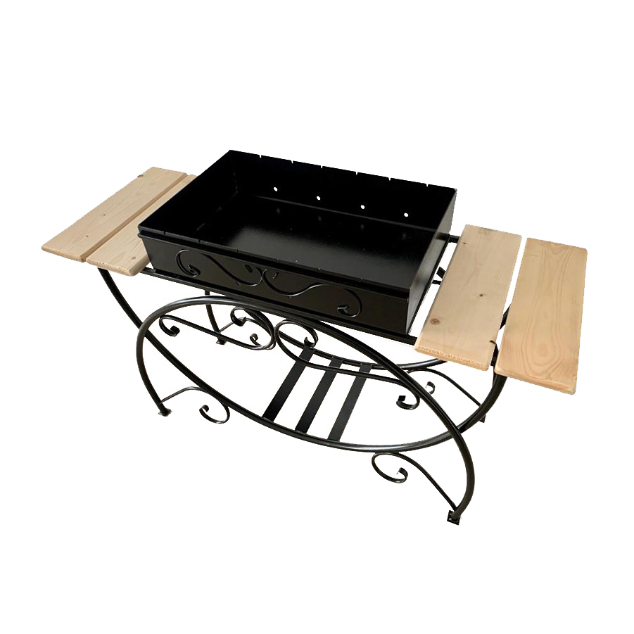 Мангал «Ажур» размером 70х120×44 — отличный выбор для любителей проводить время на природе и готовить барбекю. У этой модели мангала есть 2 столика из сосны по бокам. Мангал изготовлен из металла, что обеспечивает его долгий срок службы.Размер жаровни - 62х38см и толщина металла 3 мм. Мангал вмещает до 6 шампуров. Этот мангал станет отличным дополнением для вашего загородного дома, дачи или отдыха на природе, даря вам приятные воспоминания в компании семьи и друзей. Собственное производство в России.